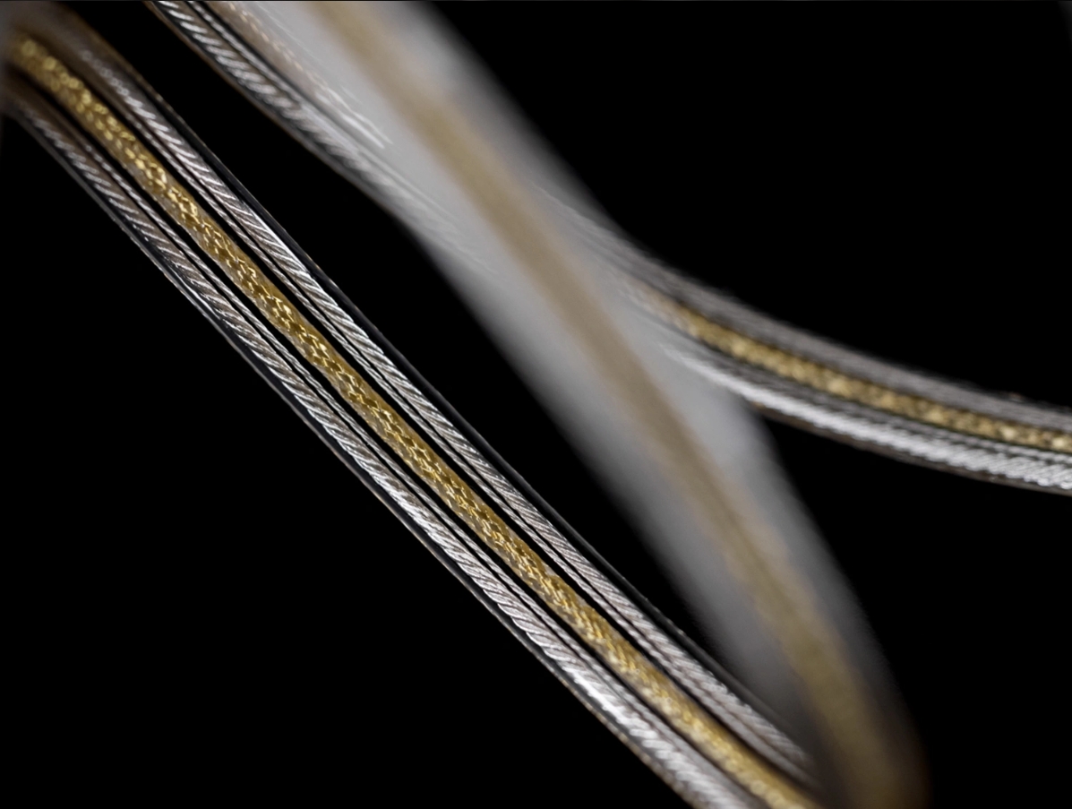 Điểm nổi bật của ddHiFi TC19CC Gold nằm ở cấu trúc 5 lõi song song dạng flat, trong đó dây tín hiệu và dây nguồn được tách biệt rõ ràng. Hai lõi tín hiệu D+ và D- sử dụng bạc đơn tinh thể 4N cho khả năng truyền dẫn nhanh và chính xác, trong khi dây nguồn được đặt ở hai bên nhằm hạn chế nhiễu chéo. Thiết kế này giúp tín hiệu digital luôn được truyền tải ổn định, giảm thiểu suy hao và đảm bảo độ chính xác cao khi sử dụng với DAC rời hoặc thiết bị phát nhạc chất lượng cao.