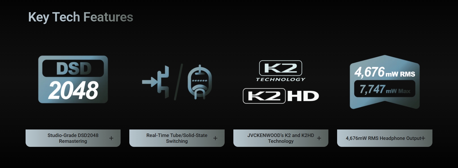 Thông qua hợp tác với JVCKENWOOD, iFi tích hợp K2 và K2HD Technology vào iDSD Phantom nhằm: khôi phục các hài âm bị suy hao, mở rộng dải cao vượt ngưỡng 22kHz, giúp âm thanh trở nên tự nhiên, giàu cảm xúc và gần với bản thu gốc hơn. Đây không phải EQ hay hiệu ứng giả lập, mà là công nghệ xử lý âm thanh chuẩn mastering.