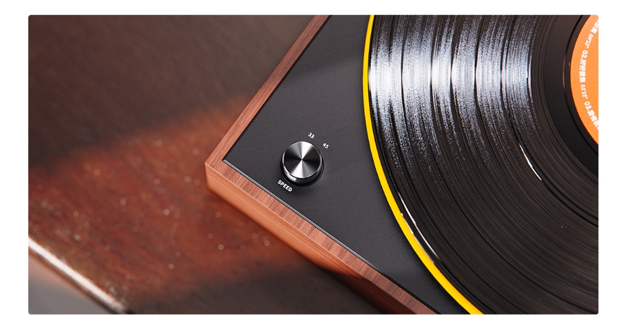 Máy hỗ trợ hai mức tốc độ tiêu chuẩn 33⅓ RPM và 45 RPM, tương thích với đĩa 7 inch và 12 inch thông qua công tắc lựa chọn. Độ sai lệch tốc độ (wow & flutter) được kiểm soát ở mức ≤0.2% WRMS (33 RPM, 3kHz), đảm bảo tín hiệu âm thanh không bị biến dạng, giữ nguyên cao độ và nhịp điệu của bản ghi.
