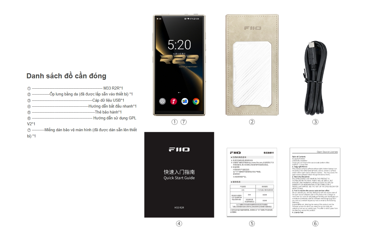 Phụ Kiện Đi Kèm Khi Mở Hộp FiiO M33 R2R