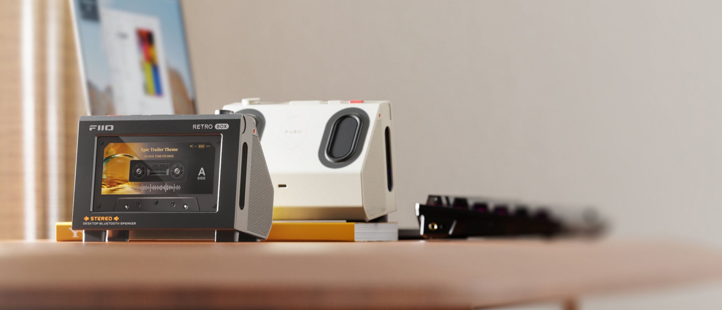 FiiO M33 R2R tương thích hoàn toàn với FiiO RETRO BOX, mẫu loa Bluetooth phong cách cassette công suất 5W × 2, tạo nên một hệ thống nghe nhạc vừa mang tính trình diễn trên bàn làm việc vừa giữ trọn chất lượng Hi-Res hiện đại.