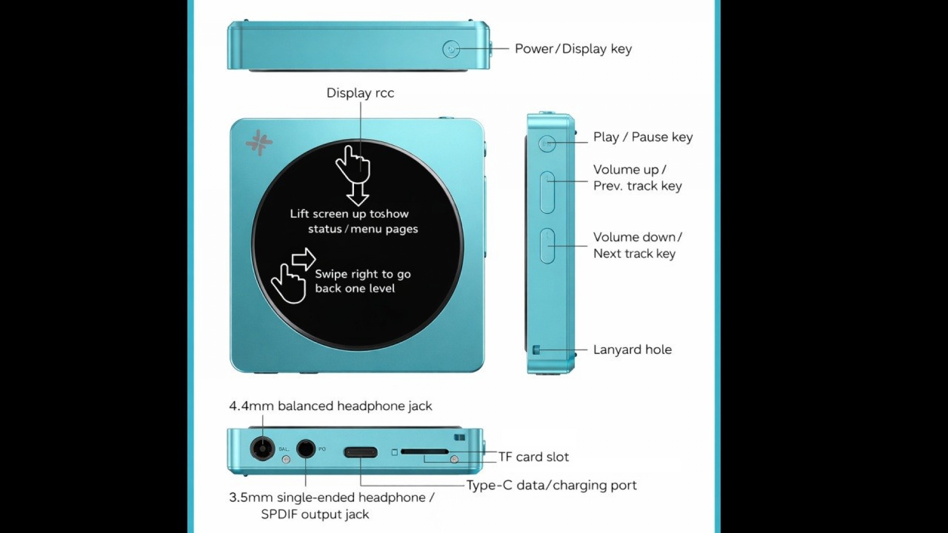 FiiO SNOWSKY DISC sở hữu thiết kế hình vuông bo tròn, nổi bật với màn hình cảm ứng tròn 1.8 inch ở chính giữa, gợi nhớ mạnh mẽ đến hình ảnh đĩa CD cổ điển.