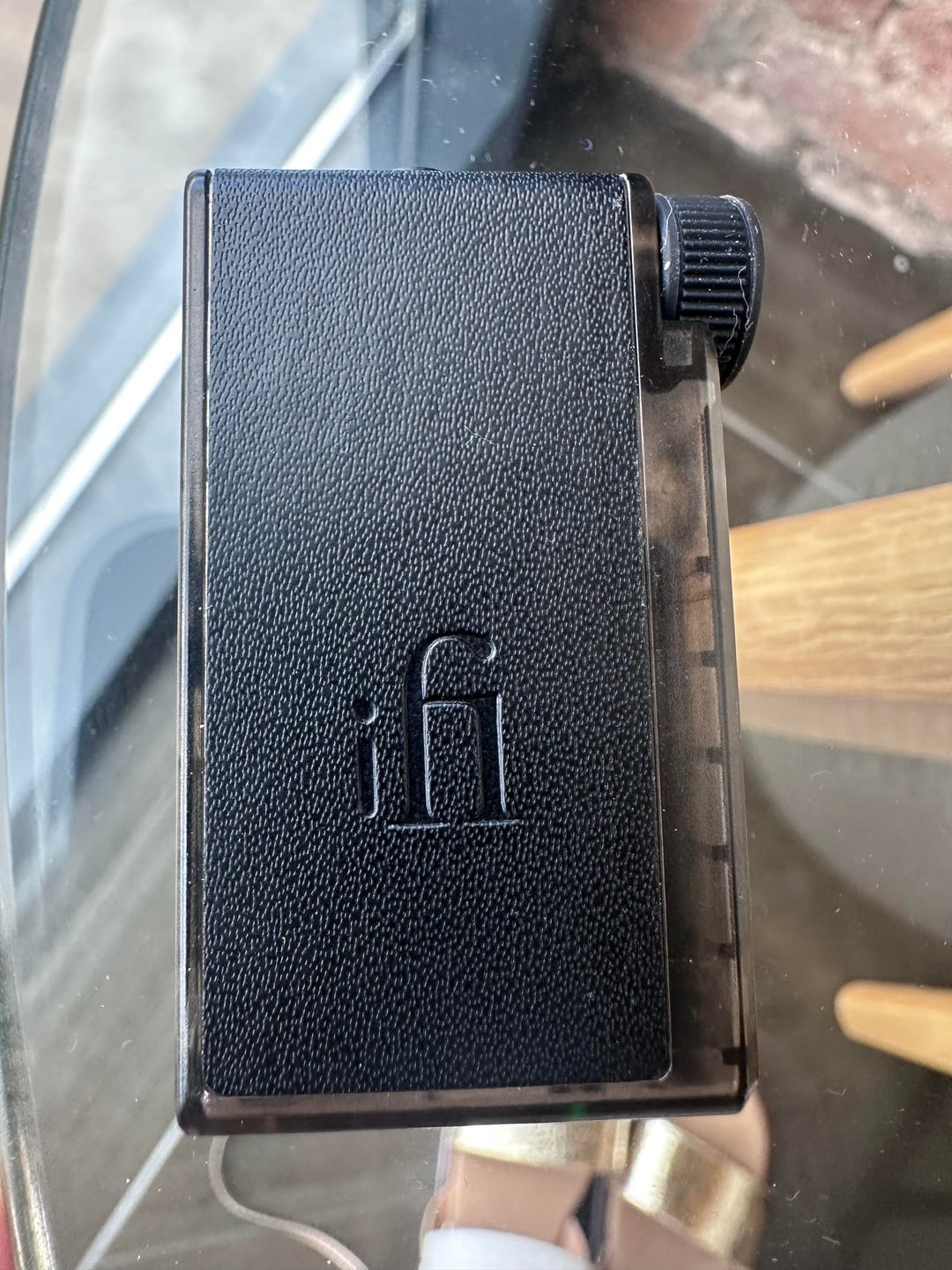 iFi vẫn giữ lại nút xoay chỉnh âm lượng – một điểm cộng lớn so với nút bấm thông thường. Ngoài ra, kẹp gài giúp cố định thiết bị trên áo hoặc balo khi di chuyển.