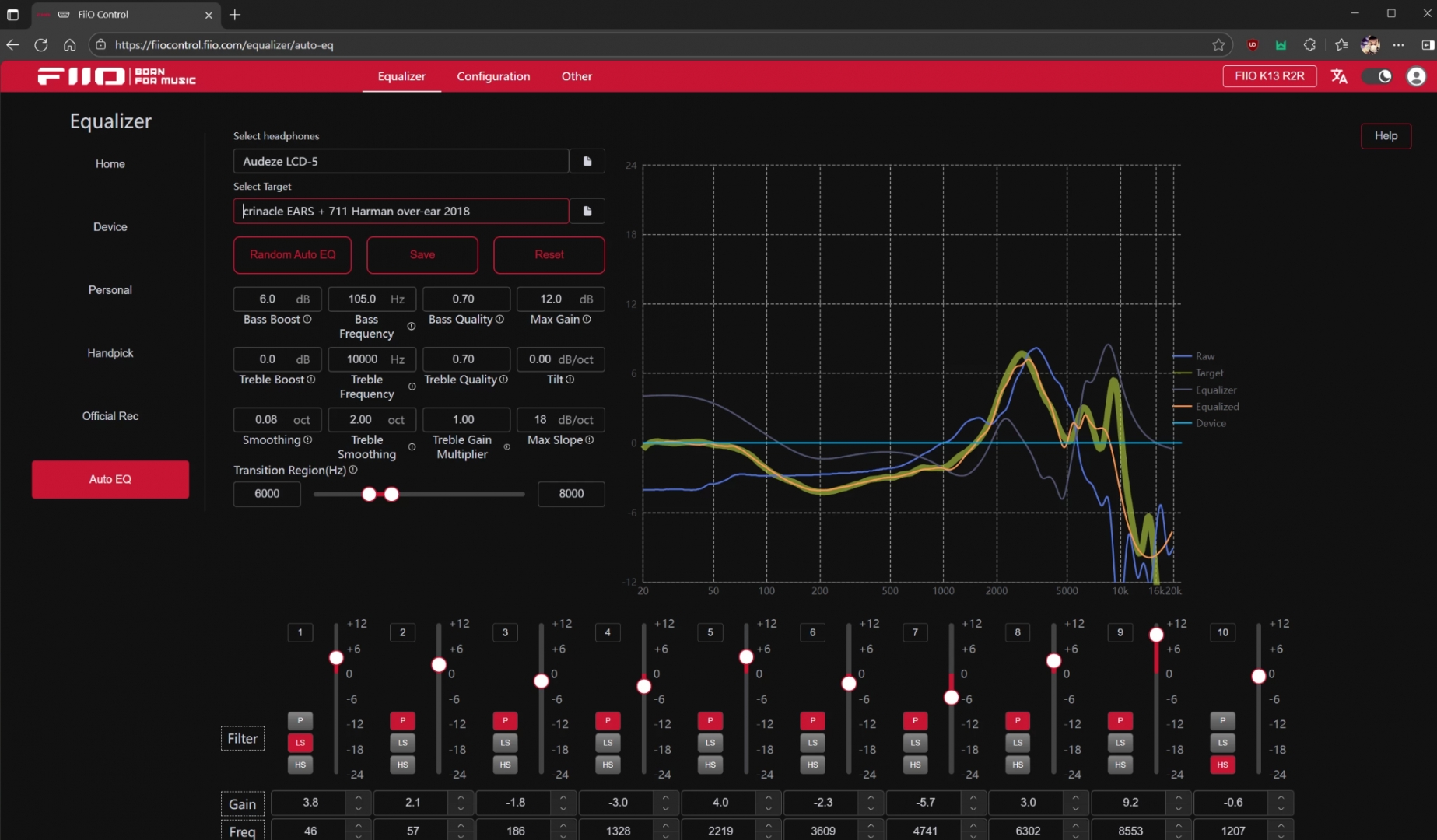 PEQ 10-Band: EQ tham số độ chính xác cao, tùy chỉnh sâu dải tần số qua FiiO Control, cho phép người dùng điều chỉnh chất âm theo tai nghe và sở thích cá nhân.