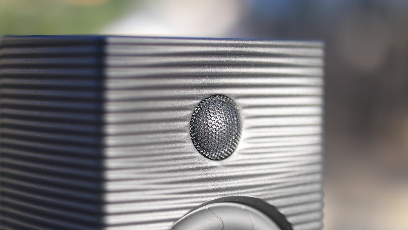 Thùng loa bằng nhôm đúc chắc chắn. Form vuông vức, không có chi tiết rườm rà