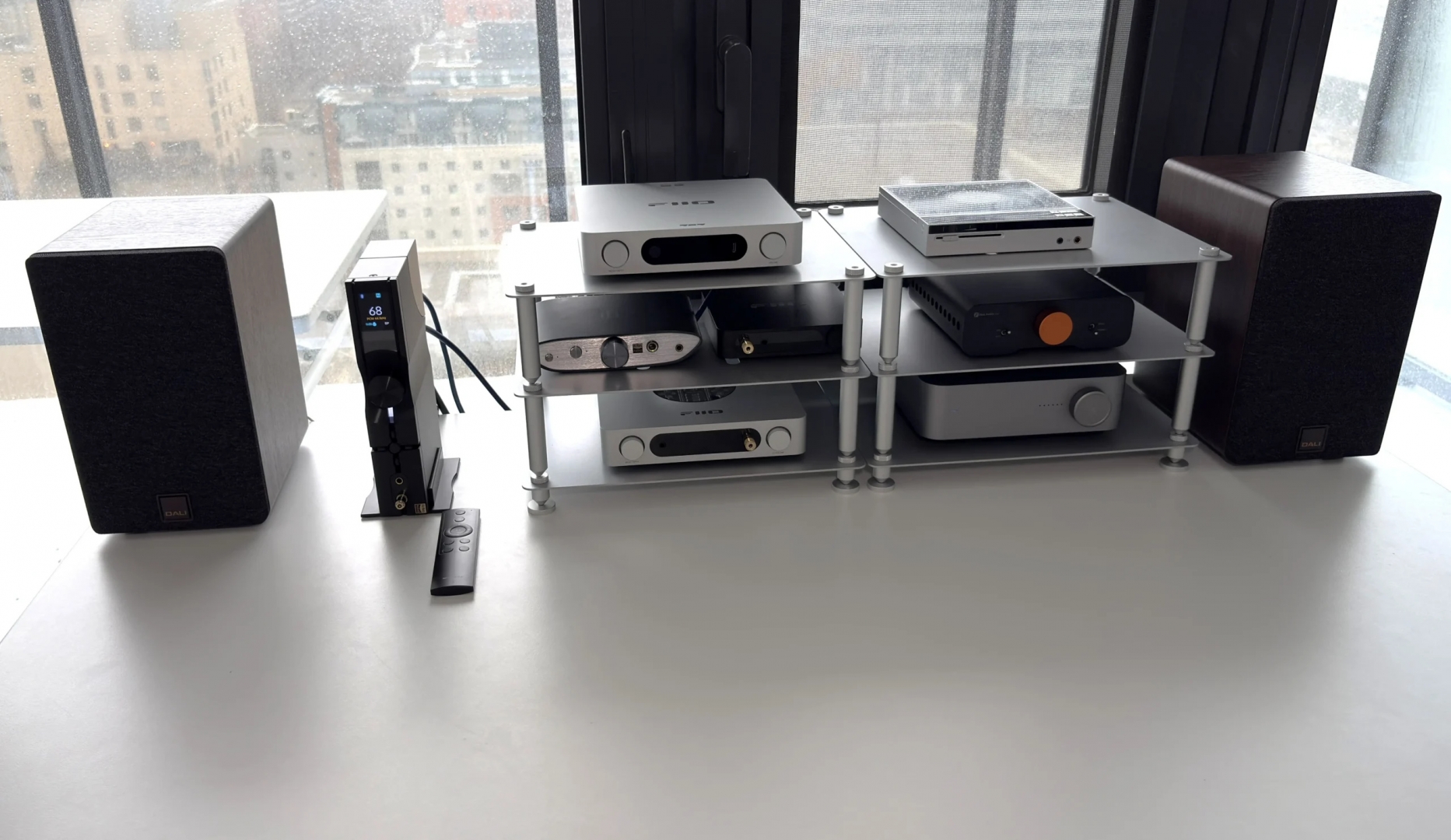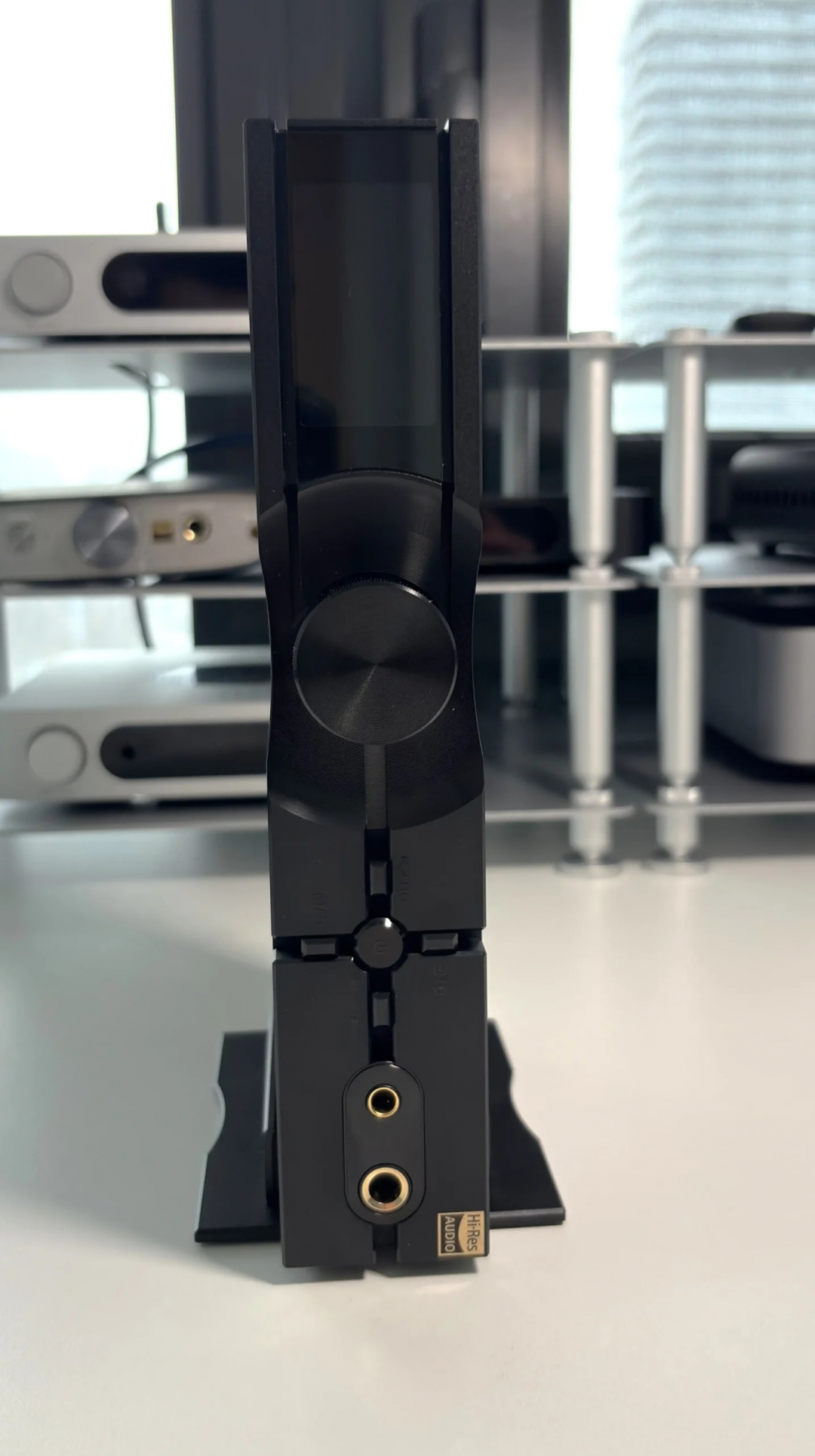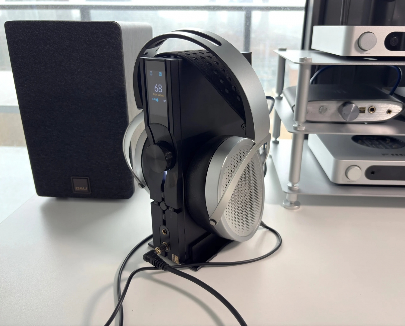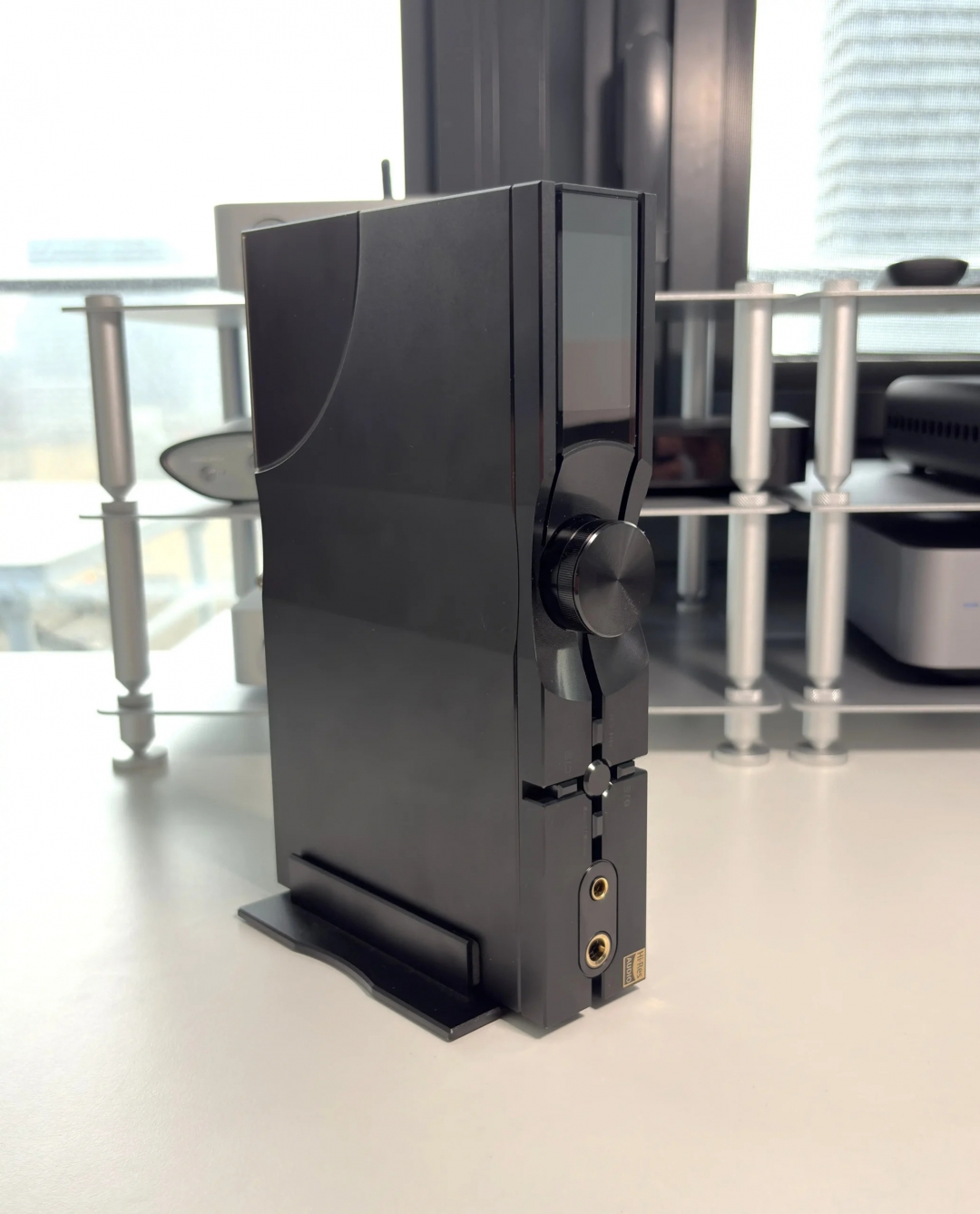 Thiết bị hỗ trợ cả hai cách đặt ngang và dọc, giúp linh hoạt trong không gian setup. Màn hình TFT hiển thị rõ ràng các thông tin cần thiết như sample rate, input và âm lượng. Núm volume dạng digital encoder mang lại trải nghiệm điều chỉnh chính xác và mượt mà.
