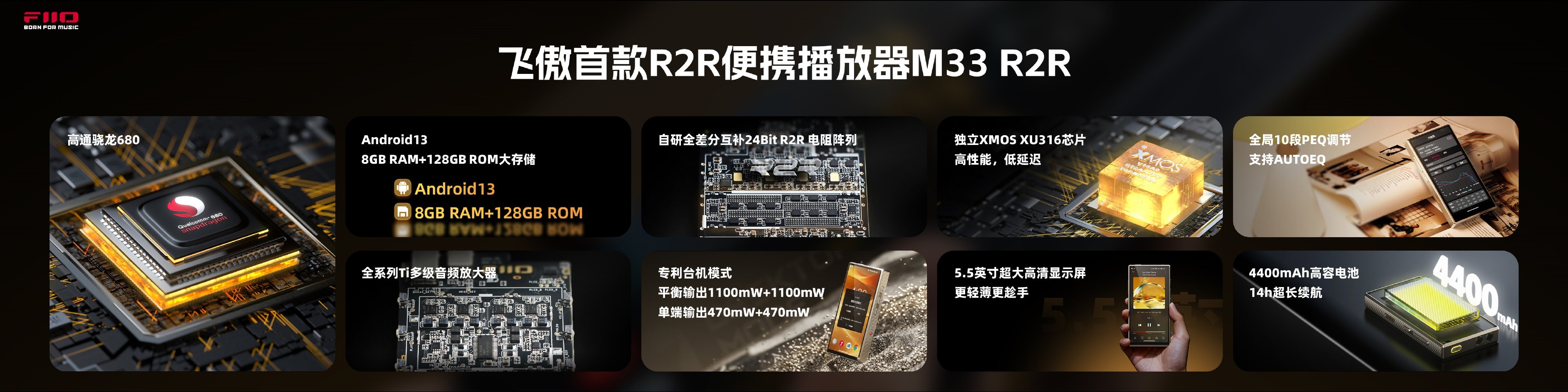 FiiO M33 R2R không chỉ chú trọng vào âm thanh mà còn sở hữu thông số phần cứng ấn tượng, đảm bảo trải nghiệm sử dụng không thua kém các dòng smartphone cao cấp:
