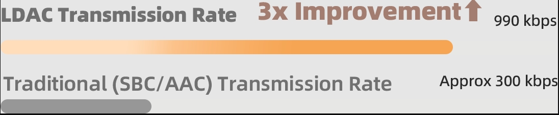 Nhờ LDAC, tai nghe có thể truyền tải nhiều dữ liệu âm thanh hơn, giúp: mở rộng dải tần, tăng độ chi tiết của bản nhạc, cải thiện chất lượng âm thanh không dây.