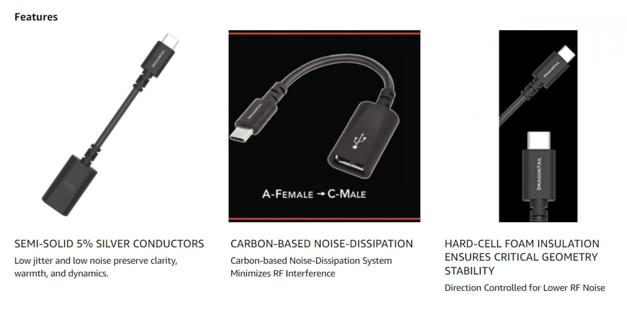 AudioQuest DragonTail USB-C to USB-A chất liệu bạc, hệ thống khử nhiễu dựa trên carbon giảm thiểu nhiễu RP ,