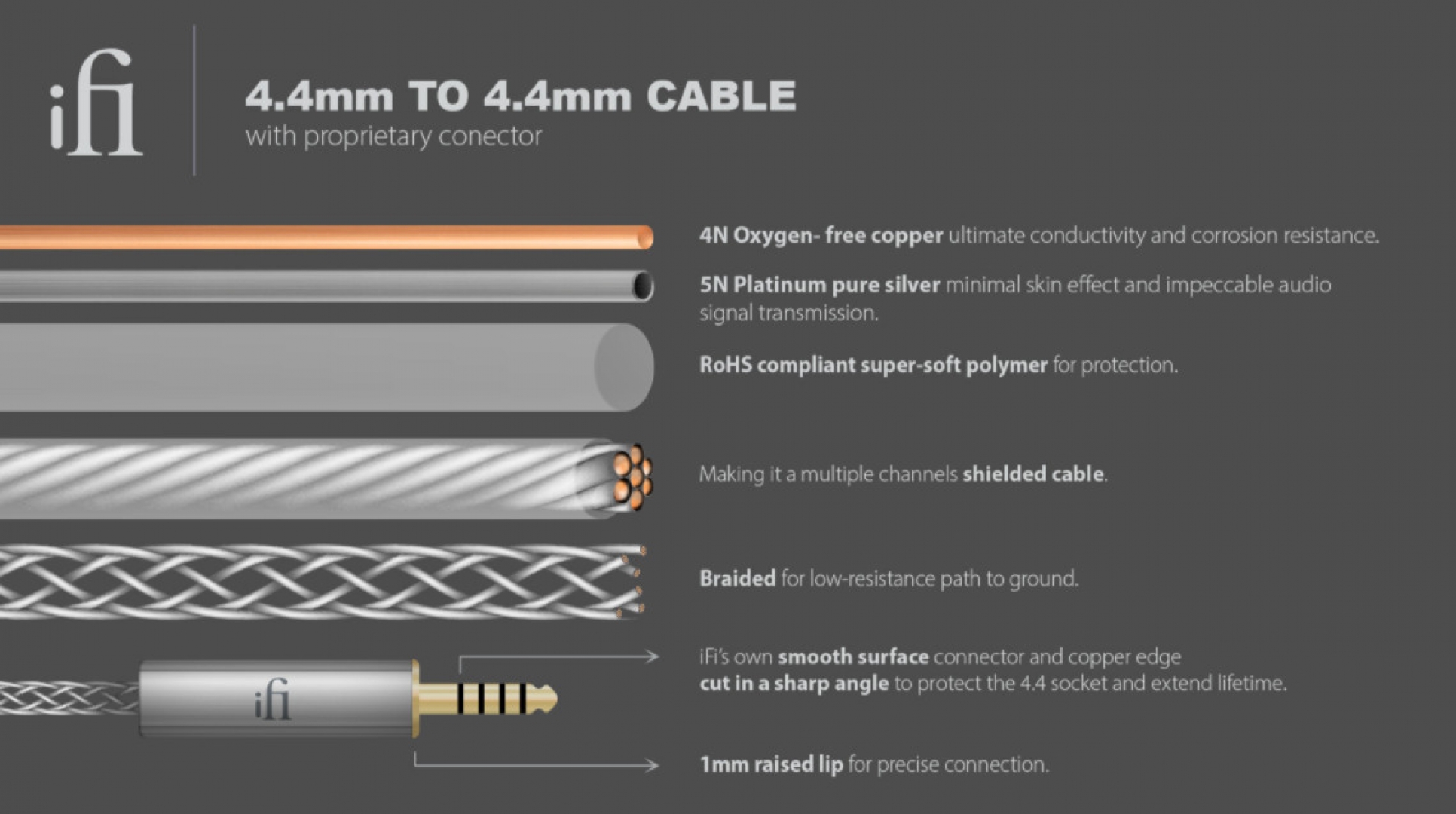 - - Đầu nối bề mặt nhẵn của iFi và cạnh đồng được cắt theo góc sắc nét để bảo vệ ổ cắm 4.4 và kéo dài tuổi thọ.