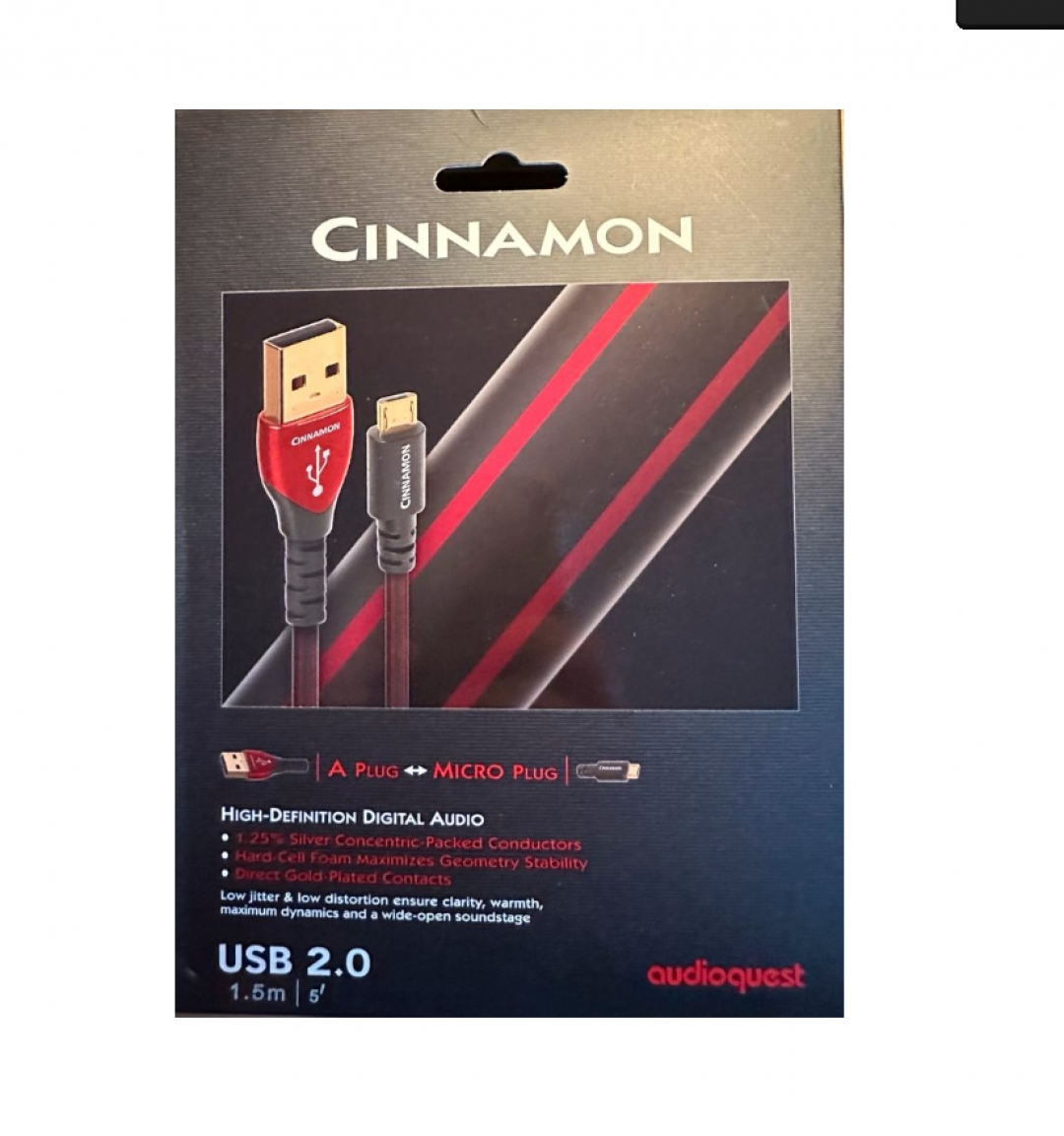 AudioQuest – thương hiệu sản xuất âm thanh đến từ Mỹ đã bổ sung thêm vào bộ sản phẩm nhà mình một mẫu dây tín hiệu có tên USB AudioQuest Cinnamon để giúp người chơi âm thanh có thể thoải mái lựa chọn cho mình một mẫu dây phù hợp nhất với mức tiền hợp lý mục đích sử dụng.