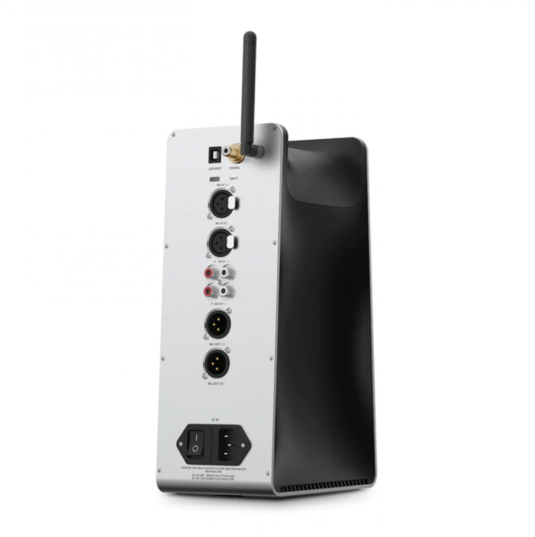 Bảng điều khiển phía trước bao gồm hai đầu ra, một đầu 6,35mm và cân bằng bốn chân XLR. Ngoài ra còn có một công tắc chức năng bốn cấp và điều khiển âm lượng. Bảng điều khiển đầu vào phía sau bao gồm các giắc cắm cho đầu nối nguồn RCA, USB-B và USB-C, ngoài ra còn có các đầu ra đường truyền cân bằng đầy đủ ba chân kép (L/R) XLR.