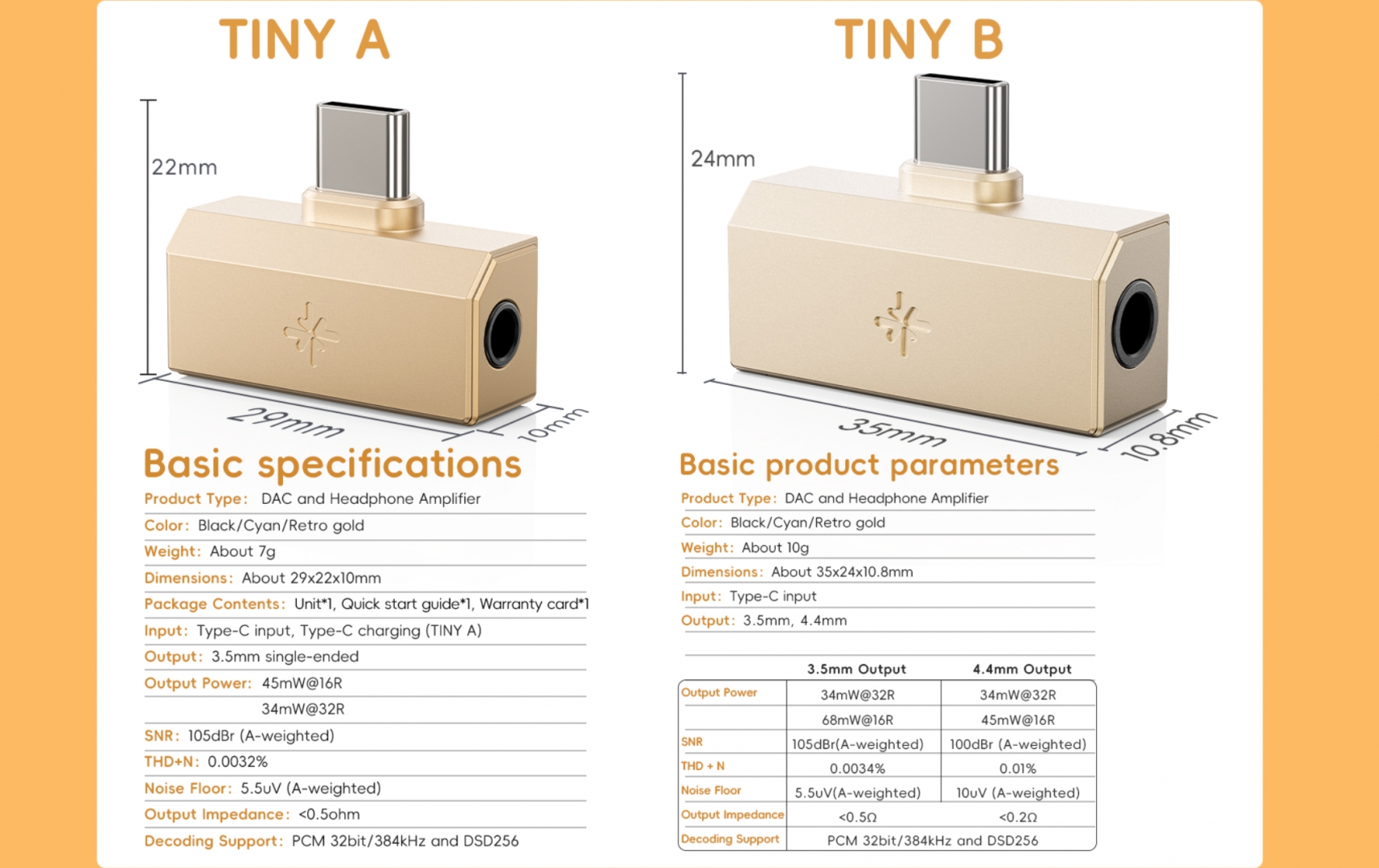 Phiên bản | TINY A (3.5mm + Type-C) TINY B (3.5mm + 4.4mm ) |