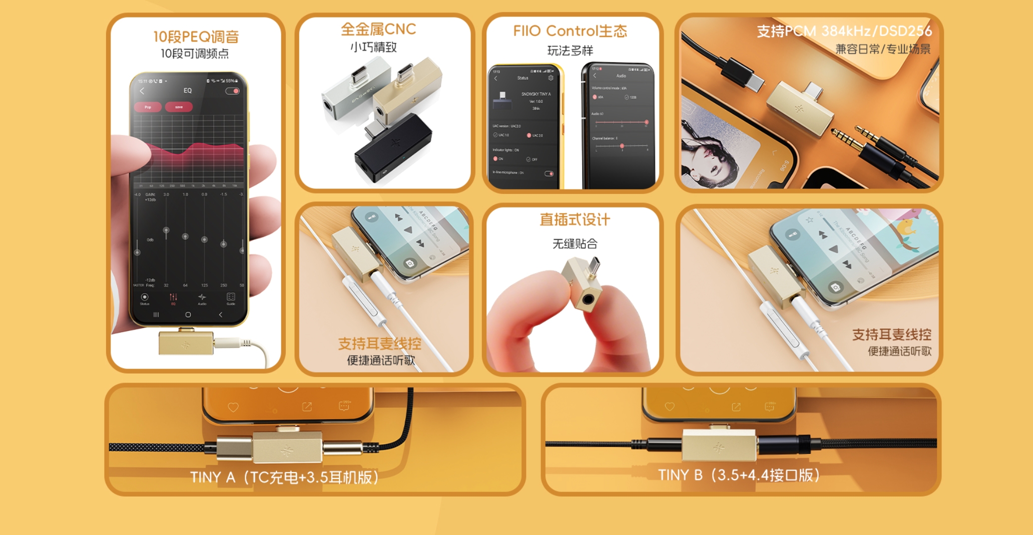 Với TINY, FiiO không chỉ mang đến âm thanh Hi-Res chuẩn mực mà còn bổ sung các tính năng như 10-band PEQ tùy chỉnh qua ứng dụng FIIO Control, hai phiên bản kết nối tiện lợi, và khả năng tương thích đa nền tảng từ Android, iOS đến PS5, Nintendo Switch.