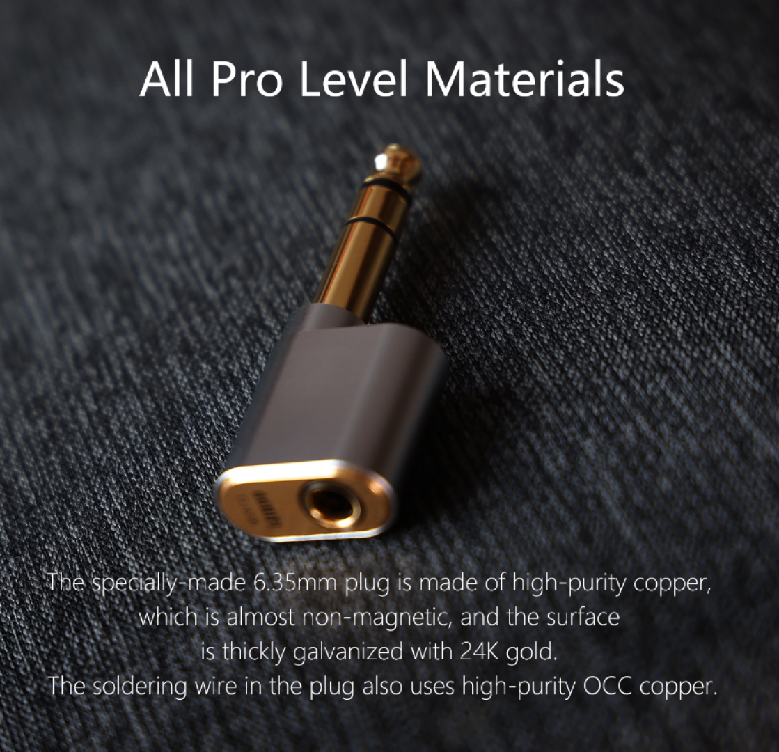 Phích cắm 6,35mm được chế tạo đặc biệt bằng đồng nguyên chất cao gần như không nhiễm từ, bề mặt được mạ vàng 24K dày. Dây hàn trong phích cắm cũng sử dụng đồng OCC có độ tinh khiết cao.