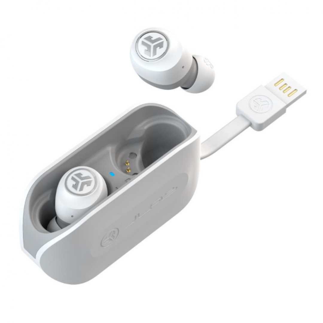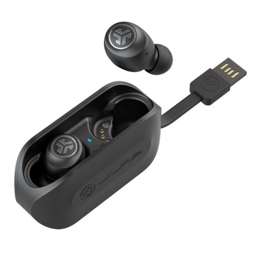 INCLUDES: GO Air True Wireless Earbuds, Charging Case w/ Integrated Charging Cable, 3 Sets Gel Tips: Small, Medium, Large, JLab Two Year Warranty.