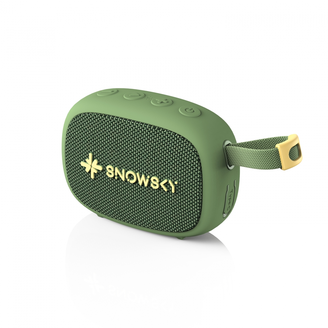 SNOWSKY Anywhere sở hữu thiết kế nhỏ gọn với trọng lượng chỉ 190g, dễ dàng mang theo trong các chuyến đi. Với ba tùy chọn màu sắc: trắng, xanh ô liu và hồng, loa mang đậm phong cách retro, phù hợp với nhiều đối tượng người dùng. Sản phẩm được trang bị dây đeo liền thân và móc carabiner, cho phép người dùng treo loa ở bất kỳ đâu, từ balo, xe đạp đến không gian sống, tạo điểm nhấn cá tính và tiện lợi trong việc sử dụng hàng ngày.