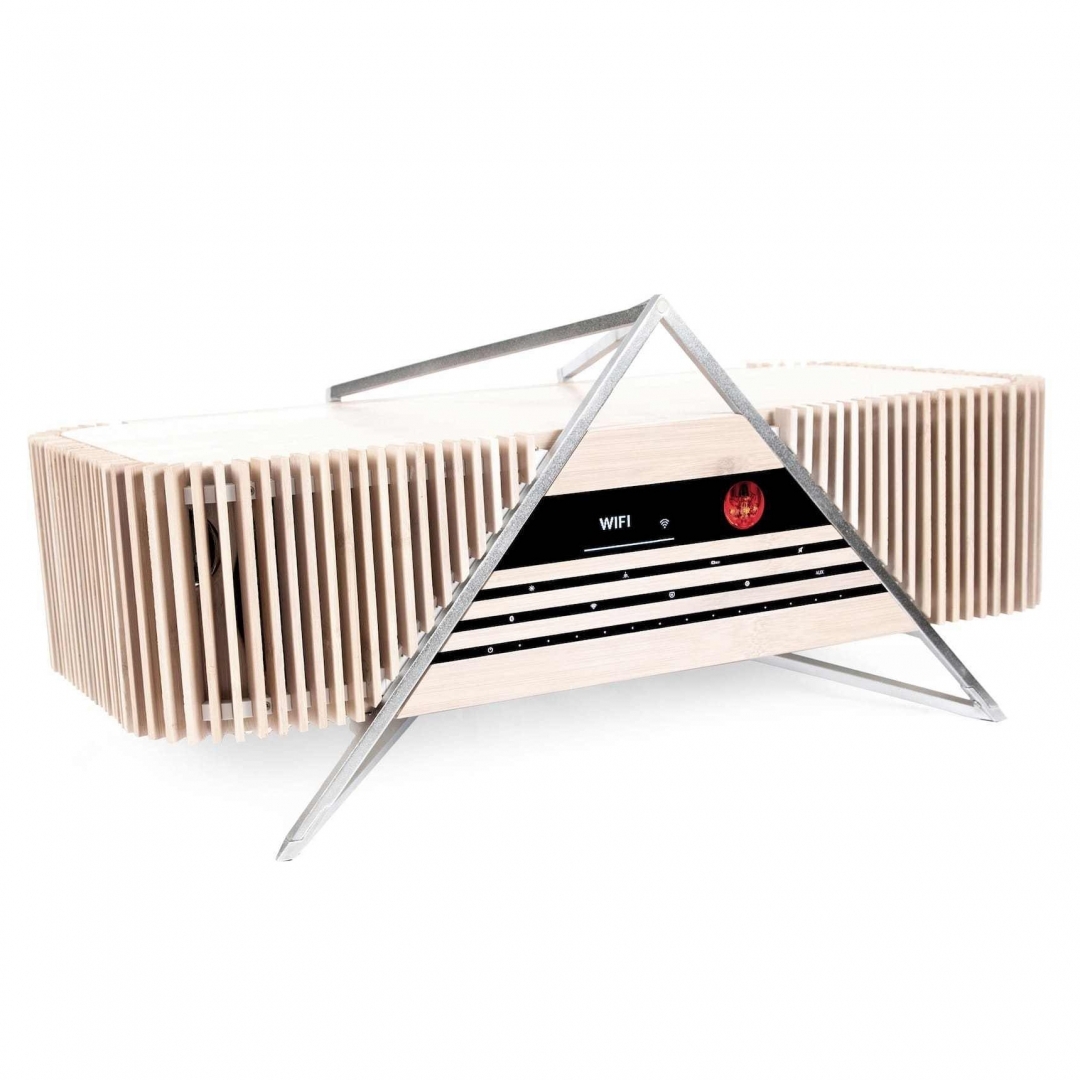 Lớp vỏ loa iFi Aurora được làm bằng gỗ tre, khung sườn bằng nhôm.