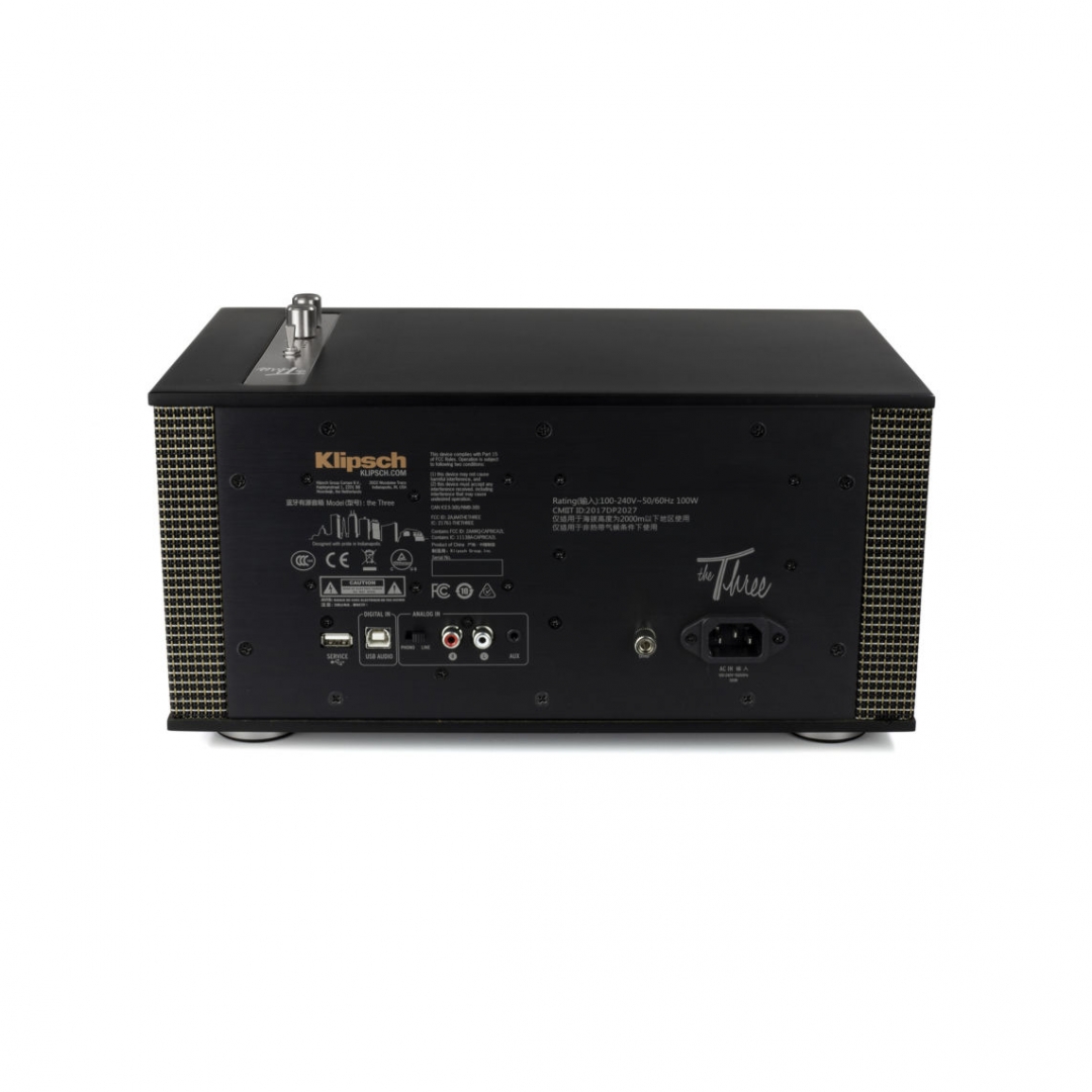 Klipsch The Three II tích hợp DAC 24-bit/192kHz và mạch Pre-Phono, thiết kế hoài cổ đa dạng kết nối nghe nhạc qua Bluetooth, từ máy tính qua cổng USB Type B, từ đầu CD và đầu phát đĩa than.