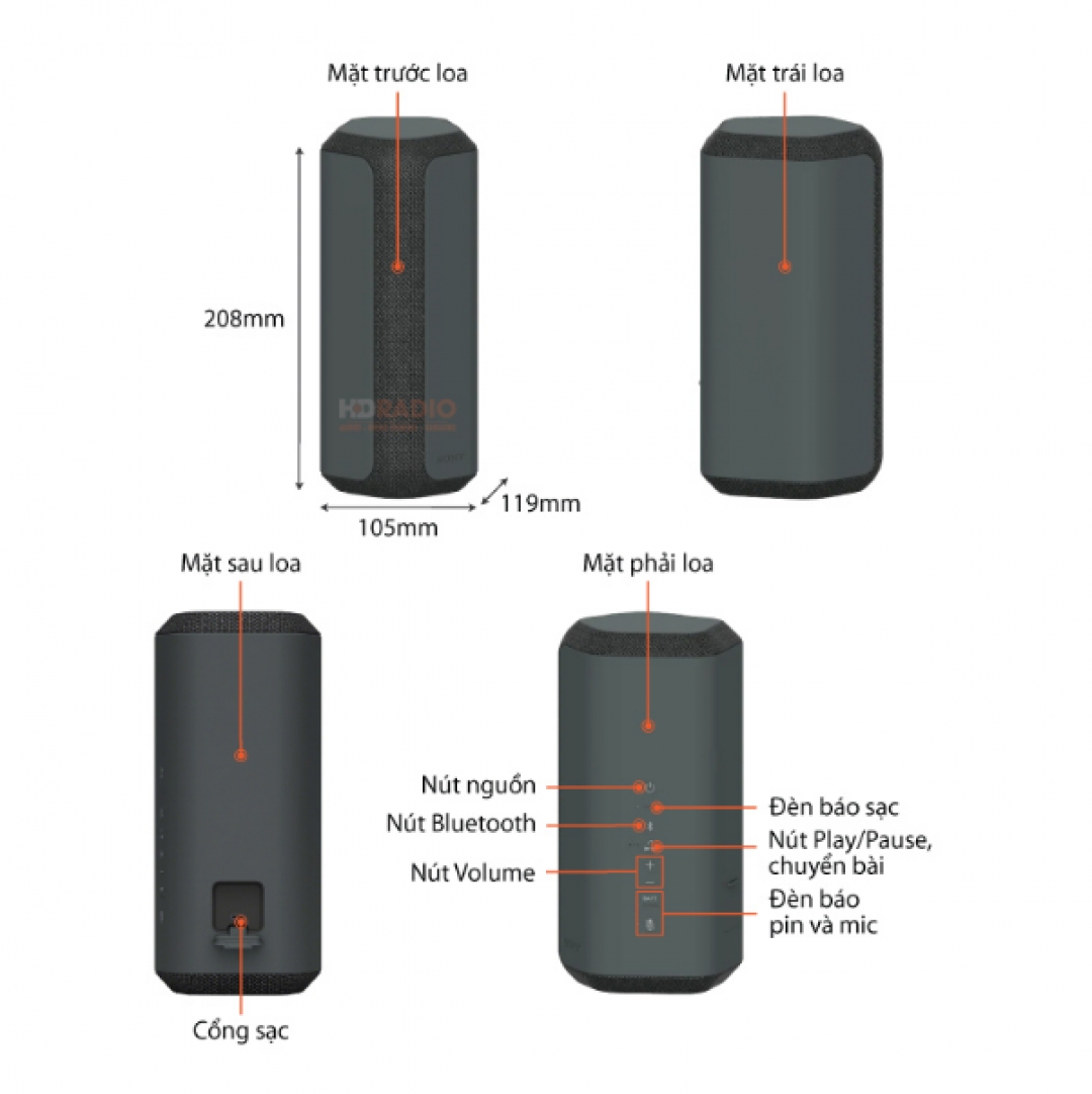 SRS-XE300 được Sony giữ chung ngôn ngữ thiết kế hình hộp ngũ giác thời thượng, trẻ trung giống mẫu XE200, đảm bảo sự gọn gàng, với một phong cách như tới từ tương lai. Với kích thước xấp xỉ 105mm x 238mm x 119mm cùng trọng lượng chỉ 1.3kg, người sử dụng hoàn toàn có thể mang XE300 đi khắp nơi mà không cần phải quá lo lắng đến việc sản phẩm chiếm không gian trong hành lý của mình.