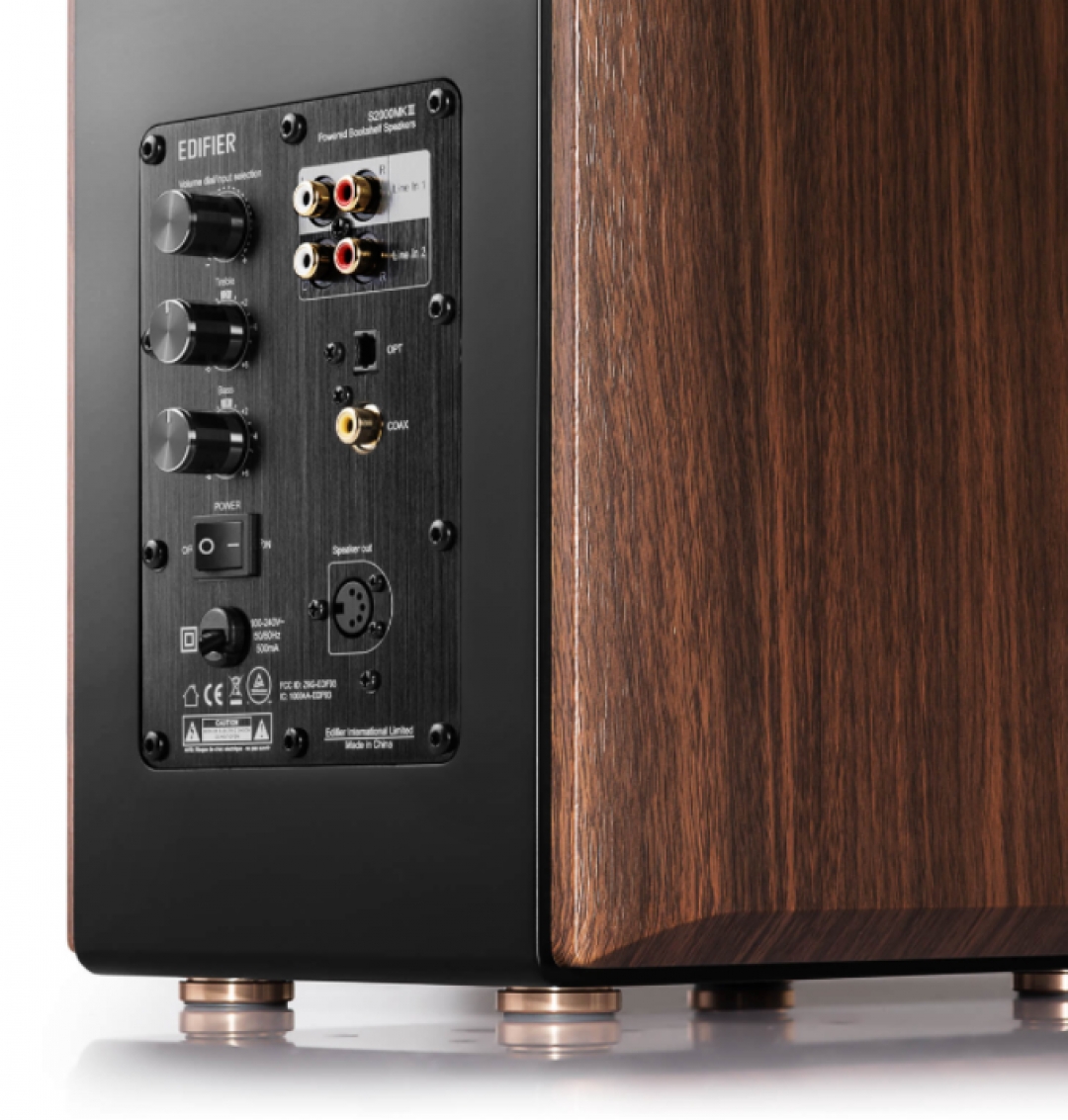 Âm bổng, âm trầm và âm lượng có thể điều chỉnh riêng. Điều chỉnh âm lượng chính có độ chính xác cao 50 cấp độ và âm lượng khởi động thông minh bảo vệ thính giác của bạn và người nói khỏi bị tổn hại. Vỏ loa được làm từ gỗ veneer trong khi các nút bấm được làm từ kim loại và mang lại cảm giác đẳng cấp chuyên nghiệp.