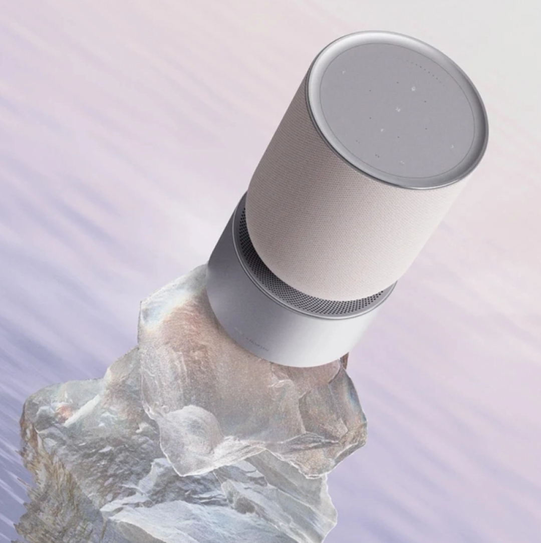 Loa có thiết kế 2 phần, phần đế loa là phần subwoofer có vỏ làm từ gỗ cao cấp chuẩn FSC, phần trên là một ống trục tròn được trang bị driver bass hướng xuống, tweeter và 4 loa midrange (2 loa ở trước và 2 loa hiệu ứng phía sau). Bên ngoài được bọc vải cao cấp nhìn rất nhã nhặn.