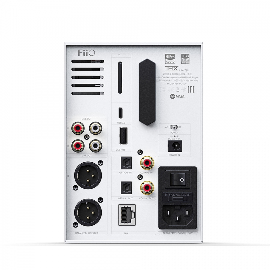 FiiO R7 là một máy nghe nhạc kỹ thuật số để bàn được trang trí hoàn chỉnh. Nó chứa mọi tùy chọn đầu vào và đầu ra hiện đang hoạt động trên thị trường. FiiO đã giới thiệu các tùy chọn đầu vào thẻ SD, USB-C, USB-A, Đồng trục và Quang học trên R7. Đối với đầu ra, thiết bị có các tùy chọn đầu ra XLR, RCA kép, Đồng trục và Quang học cũng như đầu ra tai nghe một đầu 4,4mm cân bằng, XLR cân bằng 4 chân và 6,35mm. FiiO đã trang bị cho R7 chipset Snapdragon 660 SoC 8 nhân của Qualcomm và RAM 4 GB. Nó đi kèm với hệ điều hành Android 10 mở và hỗ trợ hầu hết các ứng dụng đa phương tiện hiện có. R7 cũng hỗ trợ cổng Ethernet LAN giúp kết nối internet dễ dàng. Nó cũng hỗ trợ WiFi băng tần kép cho khả năng phát trực tuyến không dây dễ dàng