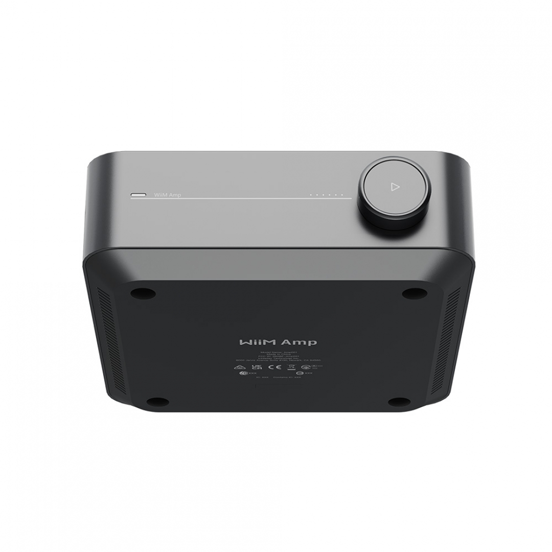 WiiM Amp có kiểu dáng nhỏ gọn với kích thước chỉ 63mm chiều cao, 190mm chiều rộng và 190mm chiều sâu, dễ dàng sắp xếp ở bất kỳ không gian nào. Thiết kế tối giản, bo tròn các góc cạnh với mặt trước chỉ có một núm xoay điều khiển đa chức năng, mang đến vẻ ngoài tinh tế và sang trọng. Vỏ ngoài của thiết bị được làm bằng nhôm cao cấp, không chỉ giúp tản nhiệt tốt mà còn tạo nên sự chắc chắn, bền bỉ theo thời gian.