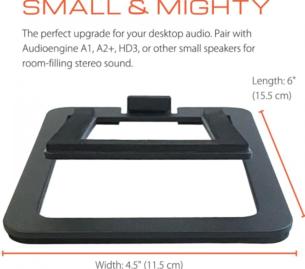 Có kích thước rộng 4,5 "và sâu 6", các chân đế này được khuyên dùng cho Audioengine A1, A2 + và HD3 và các loa nhỏ gọn khác (lên đến 5,5 "W x 7" D).