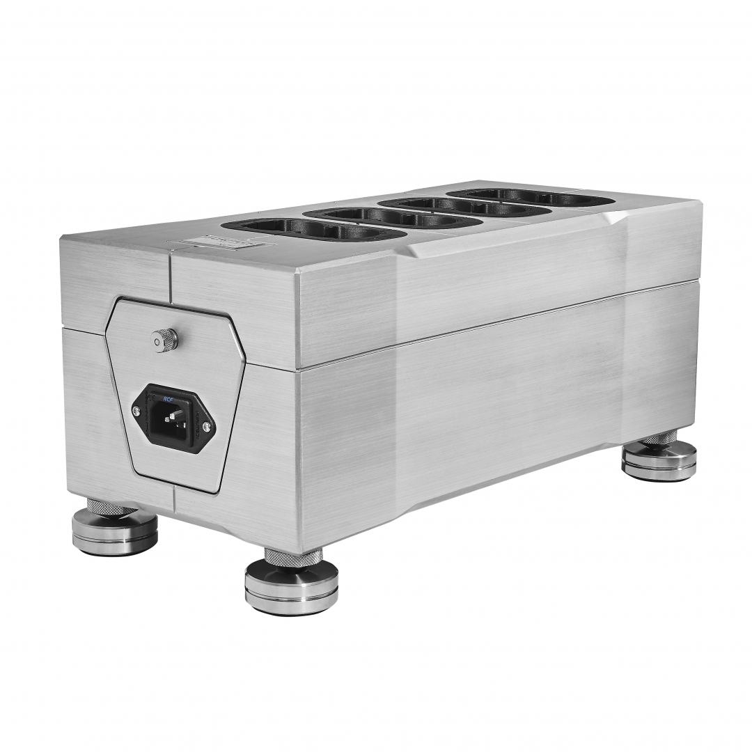 Mỗi ổ cắm được cố định bằng bốn vít đặc biệt để đảm bảo độ vững chắc cơ học. Bốn chân cách ly được gia công tỉ mỉ giúp NCF Power Vault Power ổn định, cung cấp nguồn điện sạch và ổn định cho hệ thống của bạn.