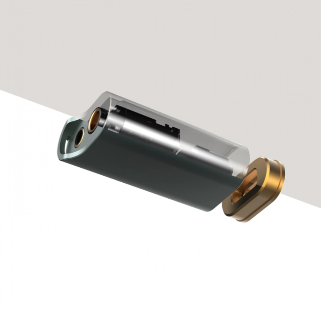 Cổng ra tai nghe 4,4mm trên ddHiFi TC44C trong suốt. Nó có một đèn chỉ báo nhiều màu sắc được tích hợp trong nó có thể phát sáng thành các màu khác nhau tùy thuộc vào tốc độ bit hoạt động của tín hiệu. Đèn màu xanh lam ở đây cho biết đầu ra PCM, màu xanh lá cây cho biết giải mã DSD. Xin lưu ý rằng, khi một thứ gì đó được kết nối với cổng 4,4mm này, đèn LED sẽ không hiển thị
