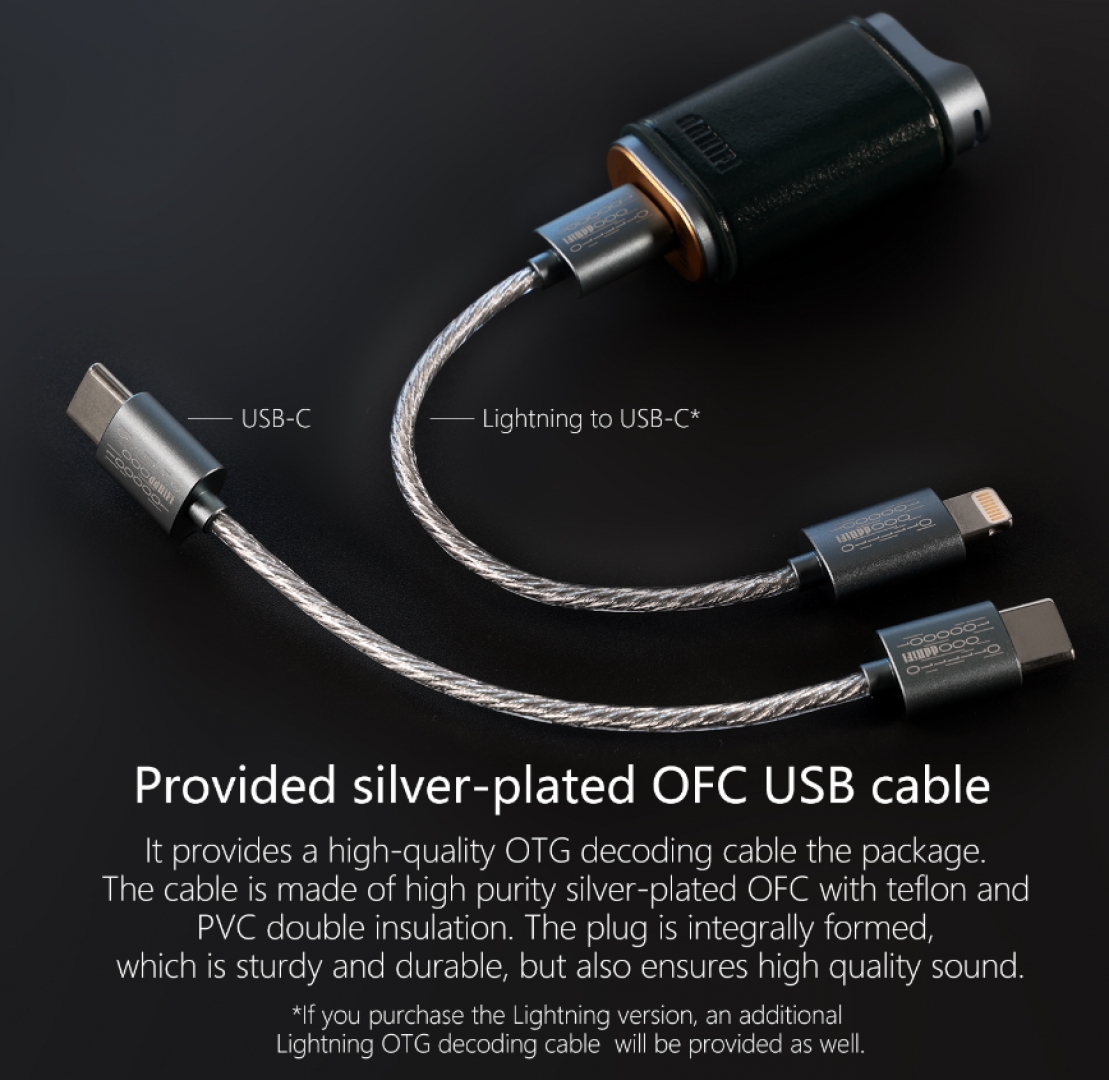 Ngoài ra hãng còn trang bị thêm hai cổng tai nghe 3.5mm và balanced 4.4mm. Đèn báo LED đa màu , cáp kết nối USB đồng OCC chất lượng cao.
