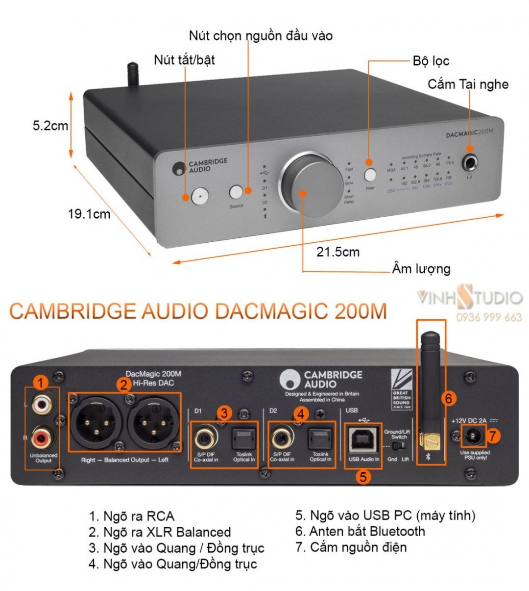 Thông số kỹ thuật Cambridge Audio Dac Magic 200M