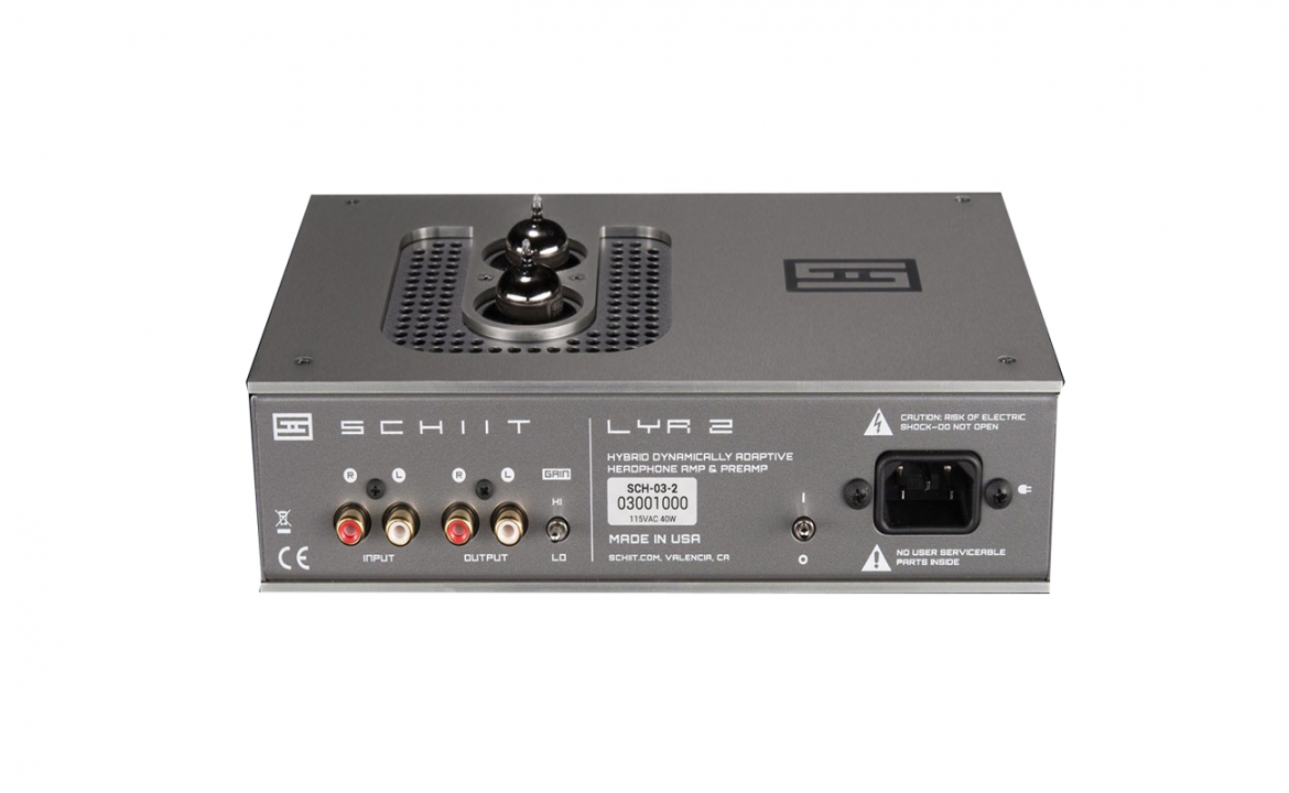 Lyr 2 là tube amplifier thế hệ mới. Tích hợp mạch preamplifier và power amplifier cho speaker và cả các tai nghe cao cấp. Đáp ứng tần số 20Hz-20Khz, -0.1db, 2Hz-500KHz, -3dB Công suất tối đa 32 ohms: 6.0W RMS trên mỗi kênh 50 ohms: 4.0W RMS trên mỗi kênh 300 ohms: 660mW RMS trên mỗi kênh 600 om: 330mW RMS trên mỗi kênh THD <0,01%, 20Hz-20KHz, ở 1V RMS, đạt được = 8 chế độ (trường hợp xấu nhất) IMD <0,01%, CCIR ở 1V RMS, đạt được = 8 chế độ (trường hợp xấu nhất) SNR> 98db, không trọng lượng, được tham chiếu đến 1V RMS, ở chế độ gain = 1 Nhiễu xuyên âm <-65dB, 20 Hz-20KHz Trở kháng đầu ra 0,7 ohms (tăng cao), 0,3 ohms (tăng thấp) Tăng 7 (16.9db) hoặc 1 (0 db), thông qua công tắc phía sau Topology Dynamic Adaptive Class A / AB, noninverting, ống lai / MOSFET, giai đoạn tăng áp đơn, đầu vào DC và đầu ra Rơle bảo vệ tiêu chuẩn bảo vệ cho sự chậm trễ bật và tắt nhanh Nguồn cung cấp Hai máy biến áp nội bộ, năm đường ray điều chỉnh nội bộ, với hơn 30.000uf điện dung bộ lọc Công suất tiêu thụ 30W Kích thước 9 x 6 x 2,25 " Trọng lượng 6 lbs