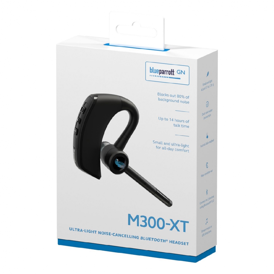 Trong hộp gồm: Tai nghe Blueparrott M300-XT, eargels, cáp usb, tờ rơi thông tin hướng dẫn sử dụng.
