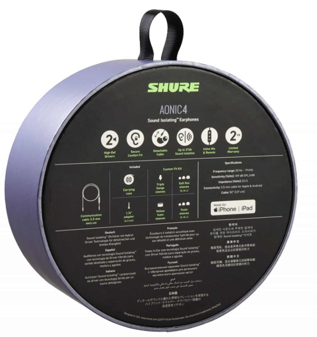 Tai nghe lai hai trình điều khiển đầu tiên của Shure, Tai nghe AONIC 4 Sound Isolating ™ có âm thanh chi tiết, ấm áp thông qua sự kết hợp giữa thiết kế phần ứng cân bằng và năng động cùng đường âm thanh độc đáo. Trải nghiệm sự thoải mái và âm thanh đắm chìm mọi lúc mọi nơi.