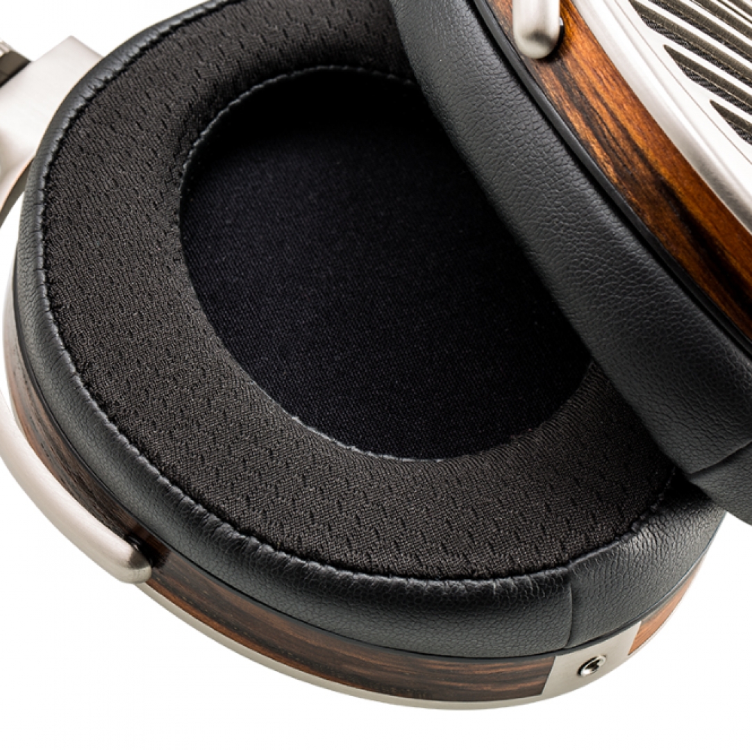 Cả hai bên earcup đều được phủ một lớp hoàn thiện bóng bẩy trông vô cùng xịn xò. Giữa khung earcup và earpad sẽ có thêm một lớp lót gỗ, gợi nhớ đến dòng HEK. Thiết kế bất đối xứng của hai bên earpad không chỉ đảm bảo vừa vặn với tai người mà còn giúp phân bổ trọng lượg để tạo cảm giác thoải mái và chắc chắn hơn nhiều. Mặt khác, bản thân các miếng earpad đều được vát nhẹ, tạo đường viền và ôm sát vào tai người dùng. Do đó, người dùng sẽ có được trải nghiệm tuyệt vời nhất kể cả khi đeo trong thời gian dài.