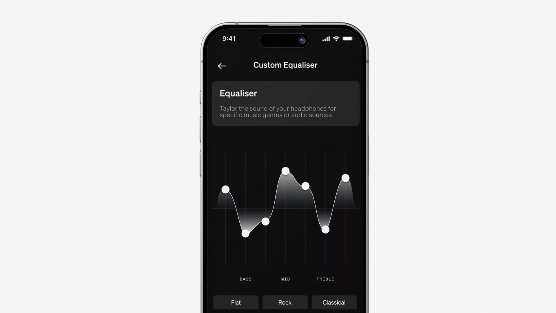 Ứng dụng Melomania App trên điện thoại cho phép tinh chỉnh EQ, cập nhật firmware, và cá nhân hóa trải nghiệm nghe theo sở thích riêng.
