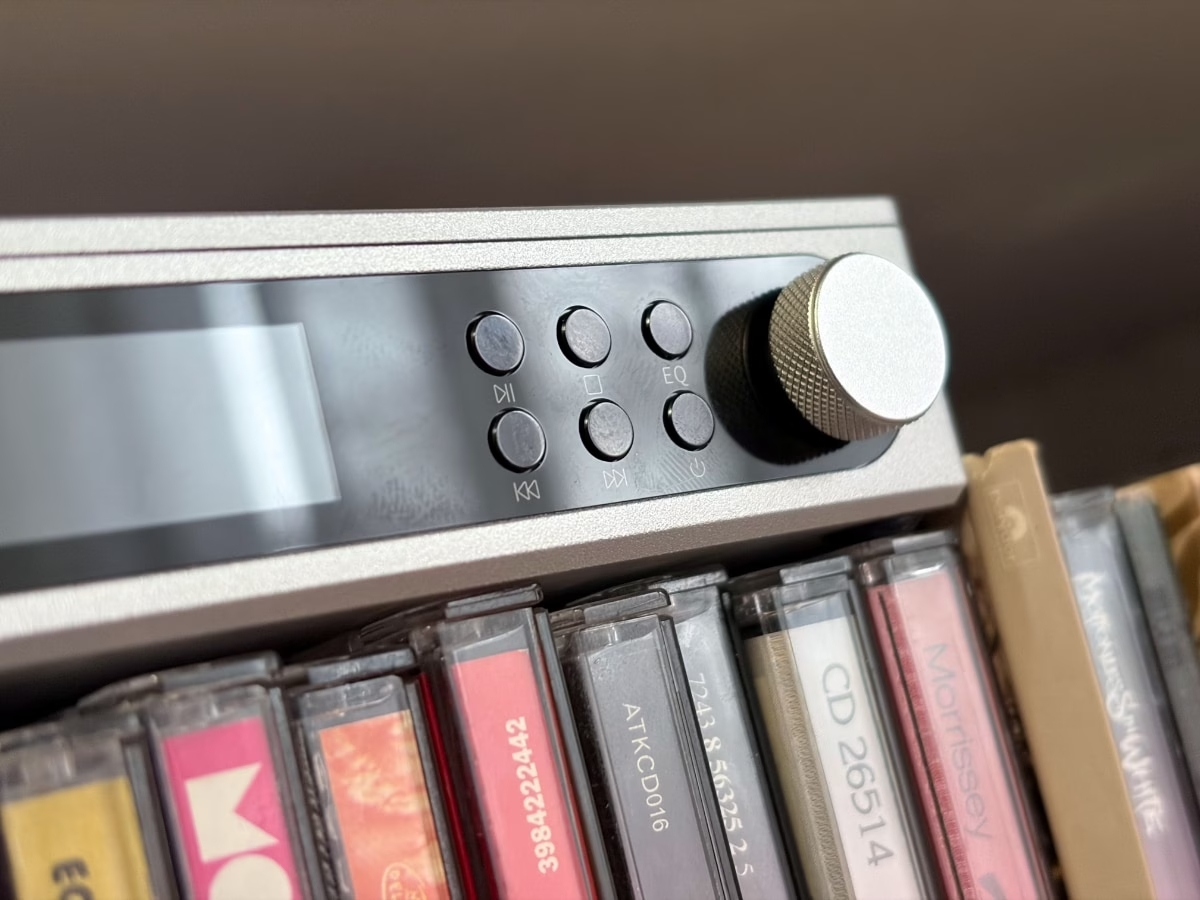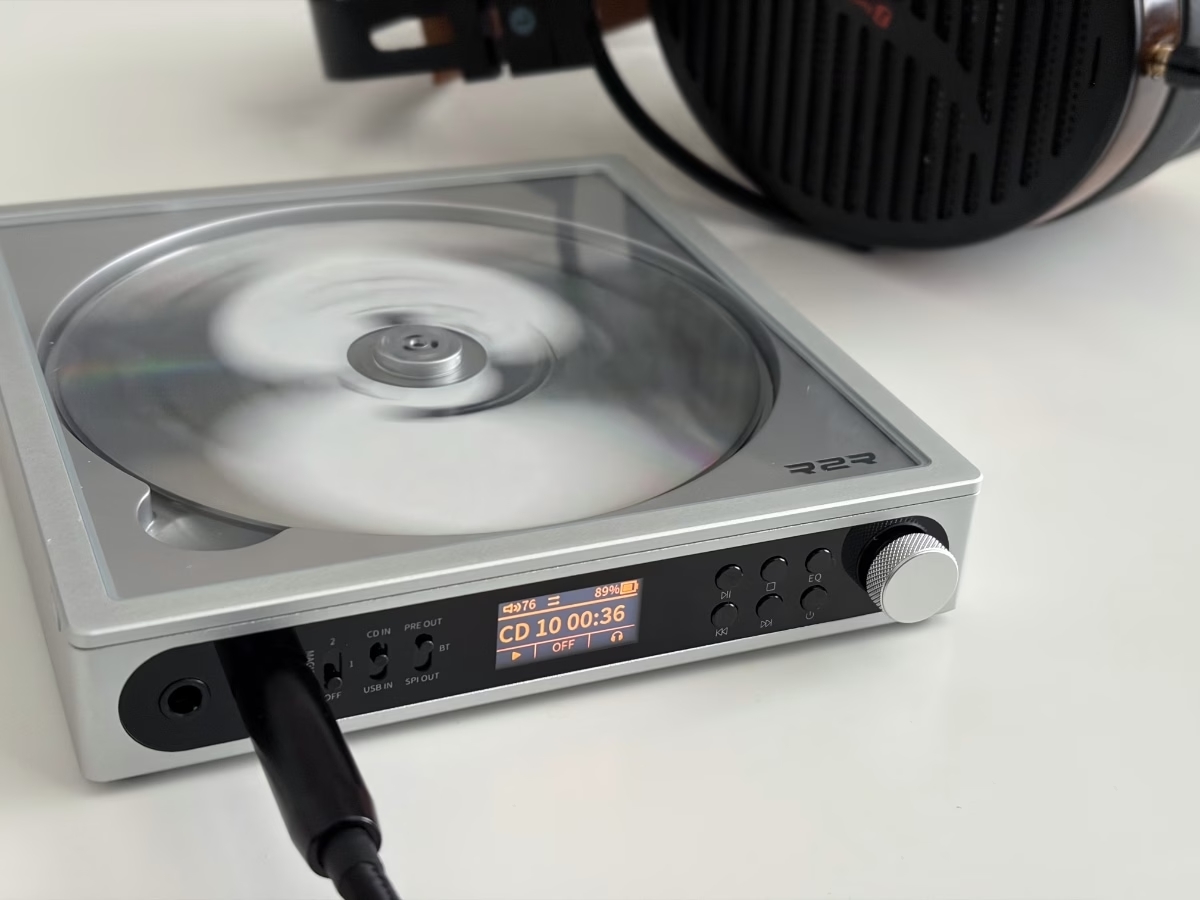 Điểm gây chú ý nhất chắc chắn là nắp trong suốt, cho phép nhìn thấy đĩa CD đang xoay. Đây rõ ràng là một xu hướng thiết kế hiện tại – có thể FiiO đã “học hỏi” từ Moondrop DiscDream hay Syitren R300. Nhưng thành thật mà nói, nhìn rất cuốn, đặc biệt với những chiếc CD có artwork đẹp.